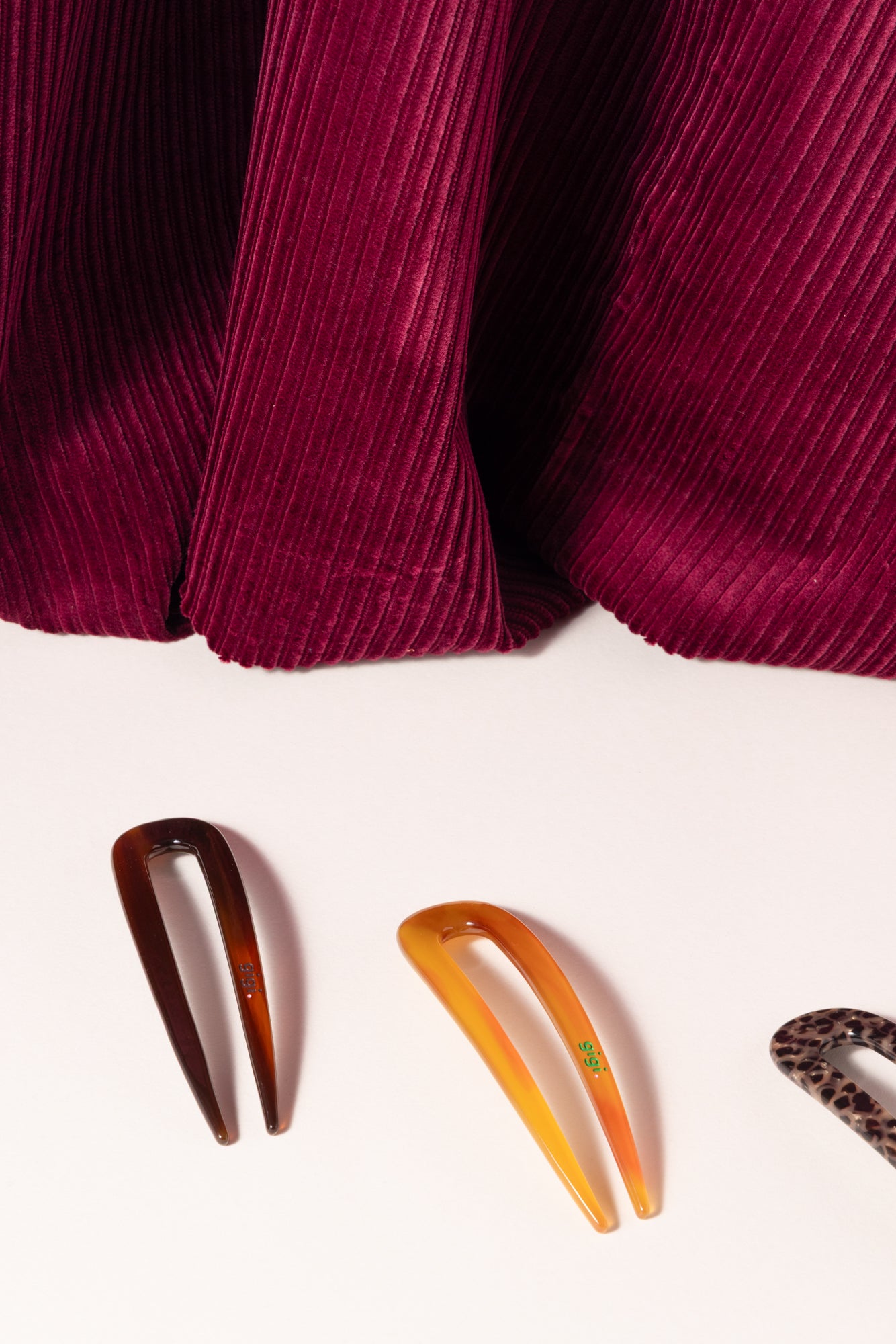 Détail : logo gigi. subtilement débossé et peint à la main